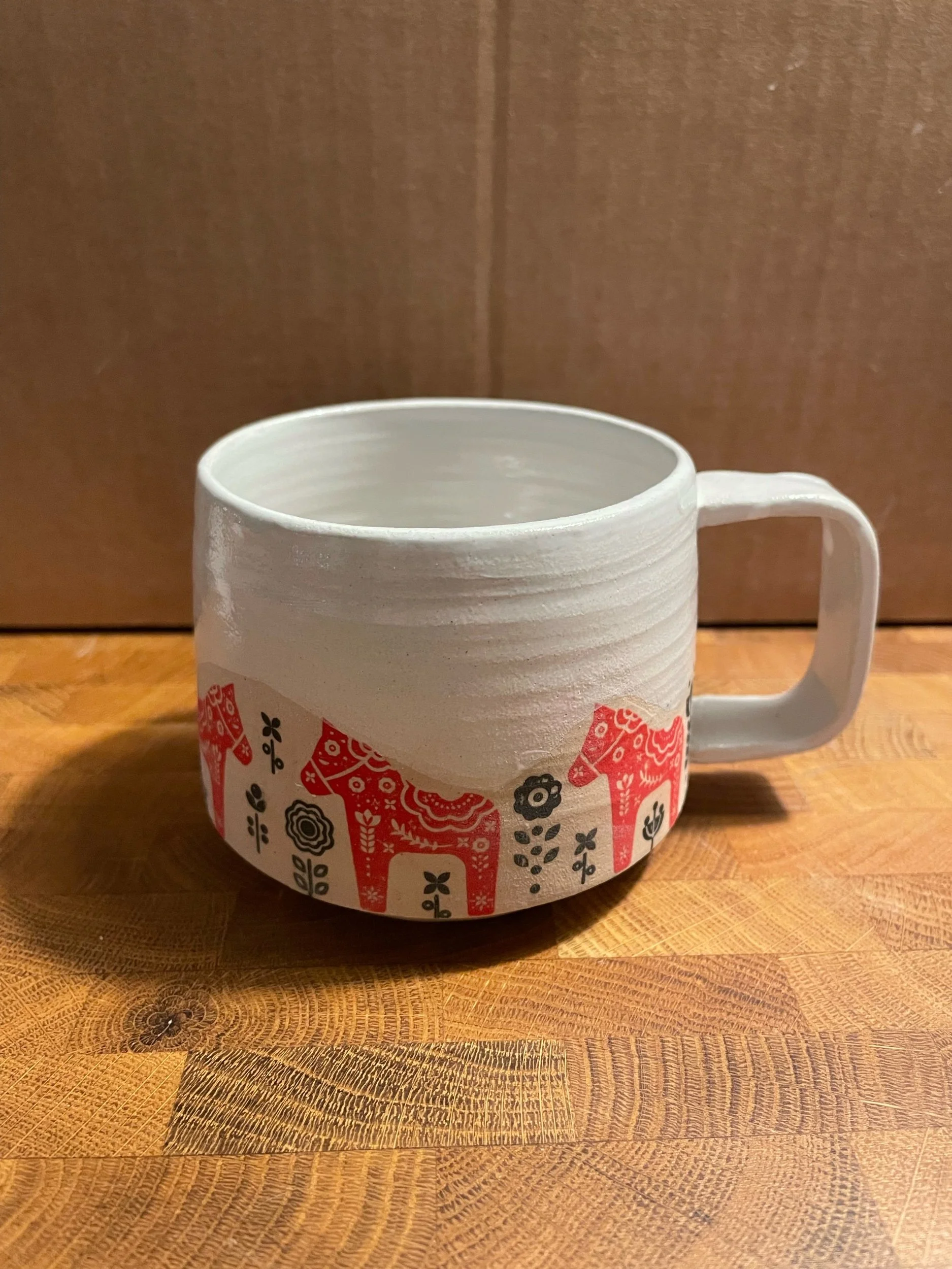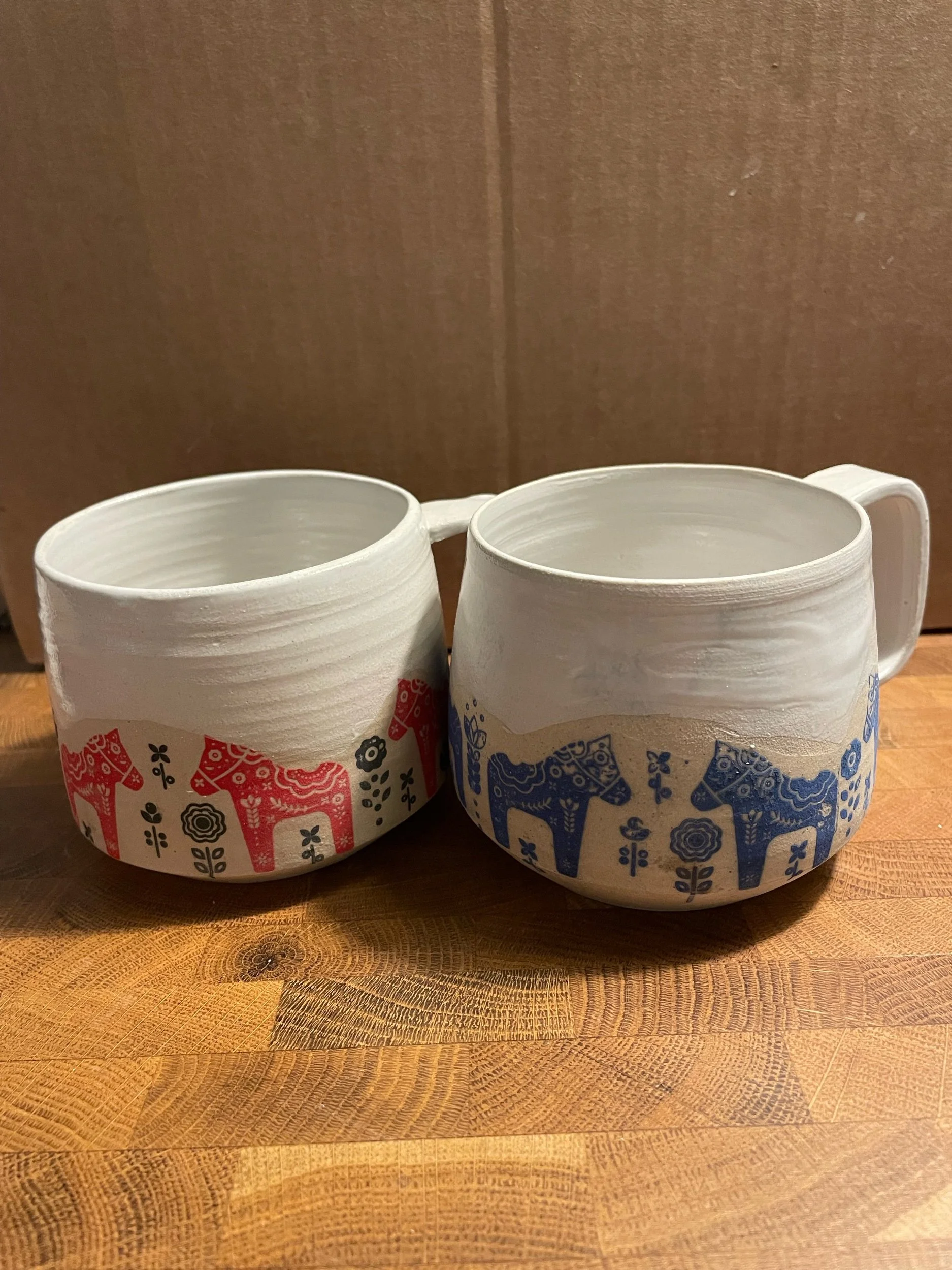Image 1 of 3 Image 2 of 3 Image 3 of 3 Dala Häst Mugs SEK 350.00 A beautiful hand thrown mug decorated in red or white with the traditional iconic Swedish horse Dala Häst: Red Blue Quantity: Add To Cart Added! A beautiful hand thrown mug decorated in red or white with the traditional iconic Swedish horse Reviews Reviewer Name Review Date Star Rating Description Posted on Etsy Product Show More